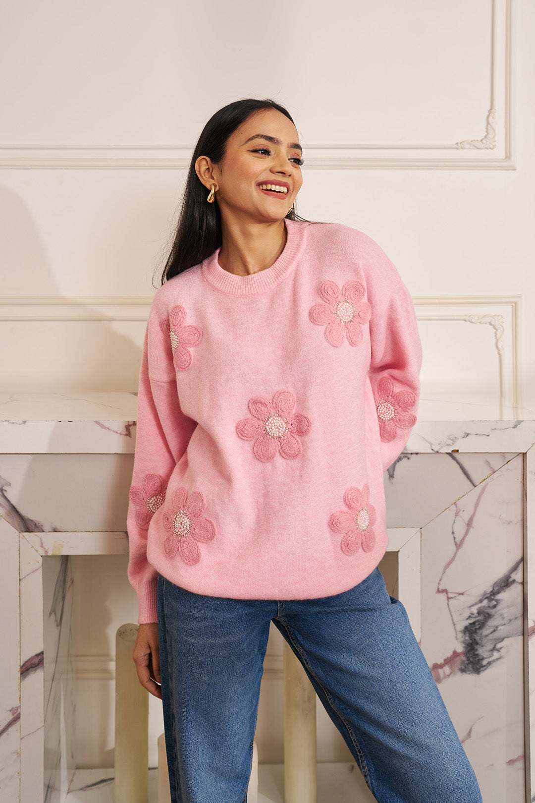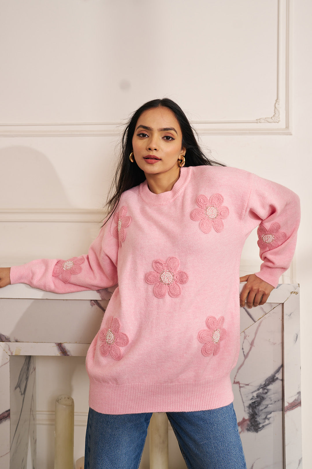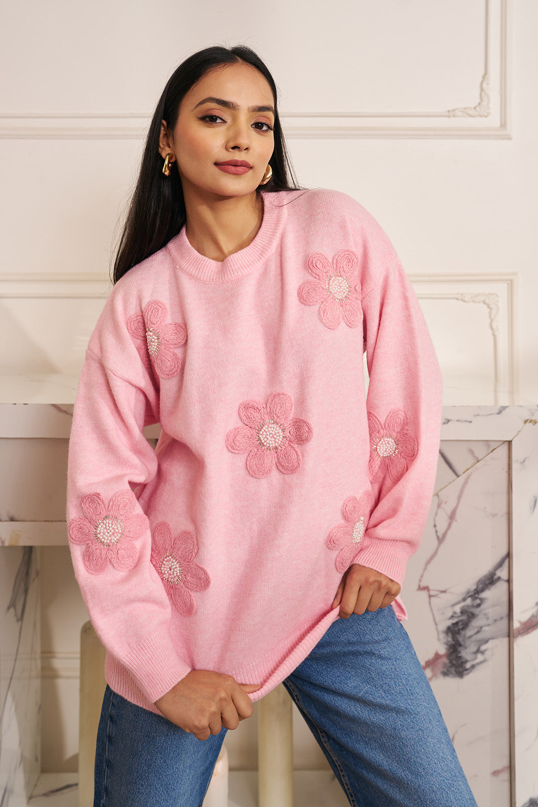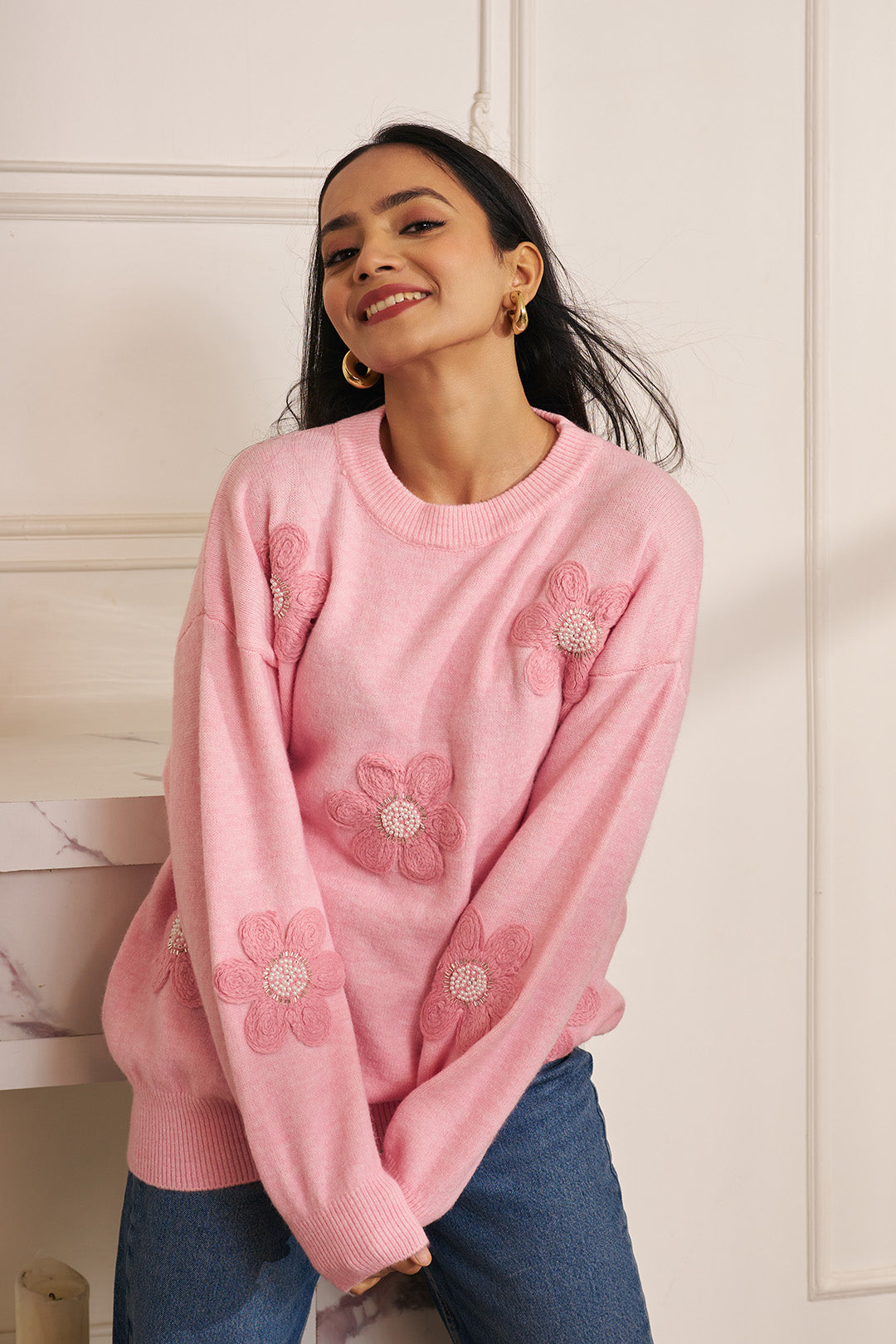 Women Soft Pink Knit Embellished Co-ord Set Janet