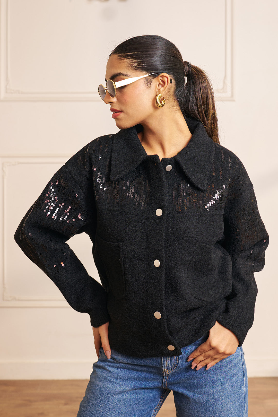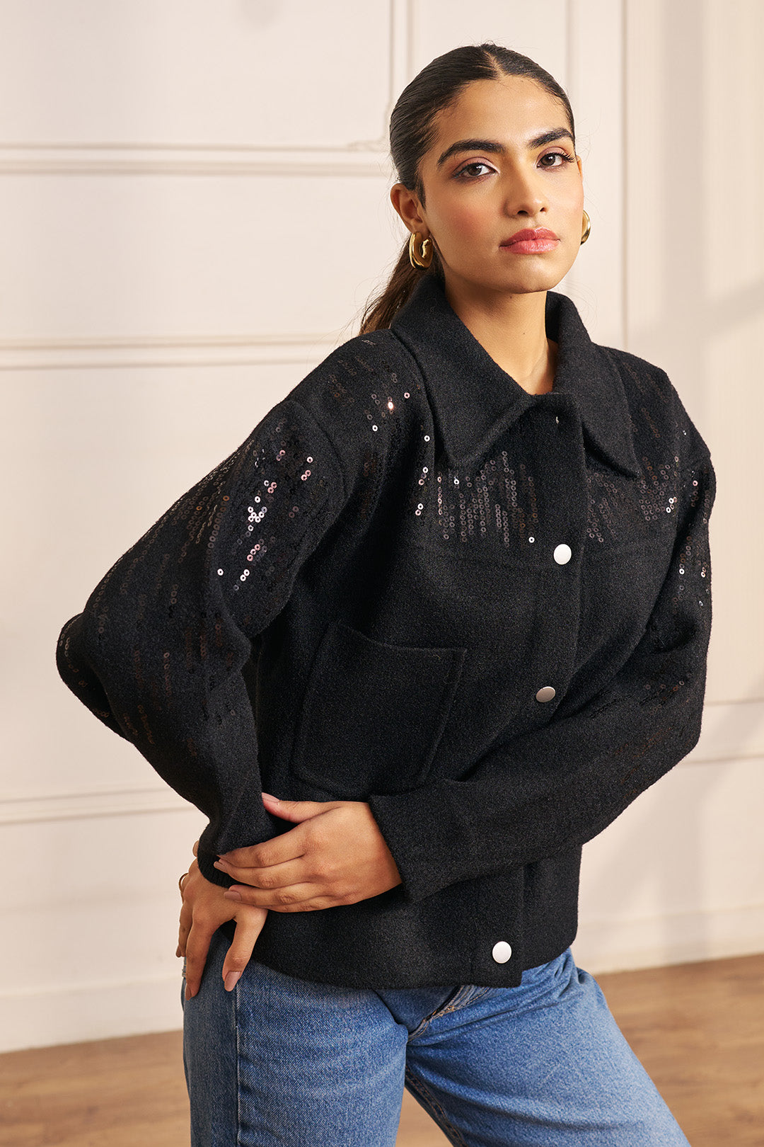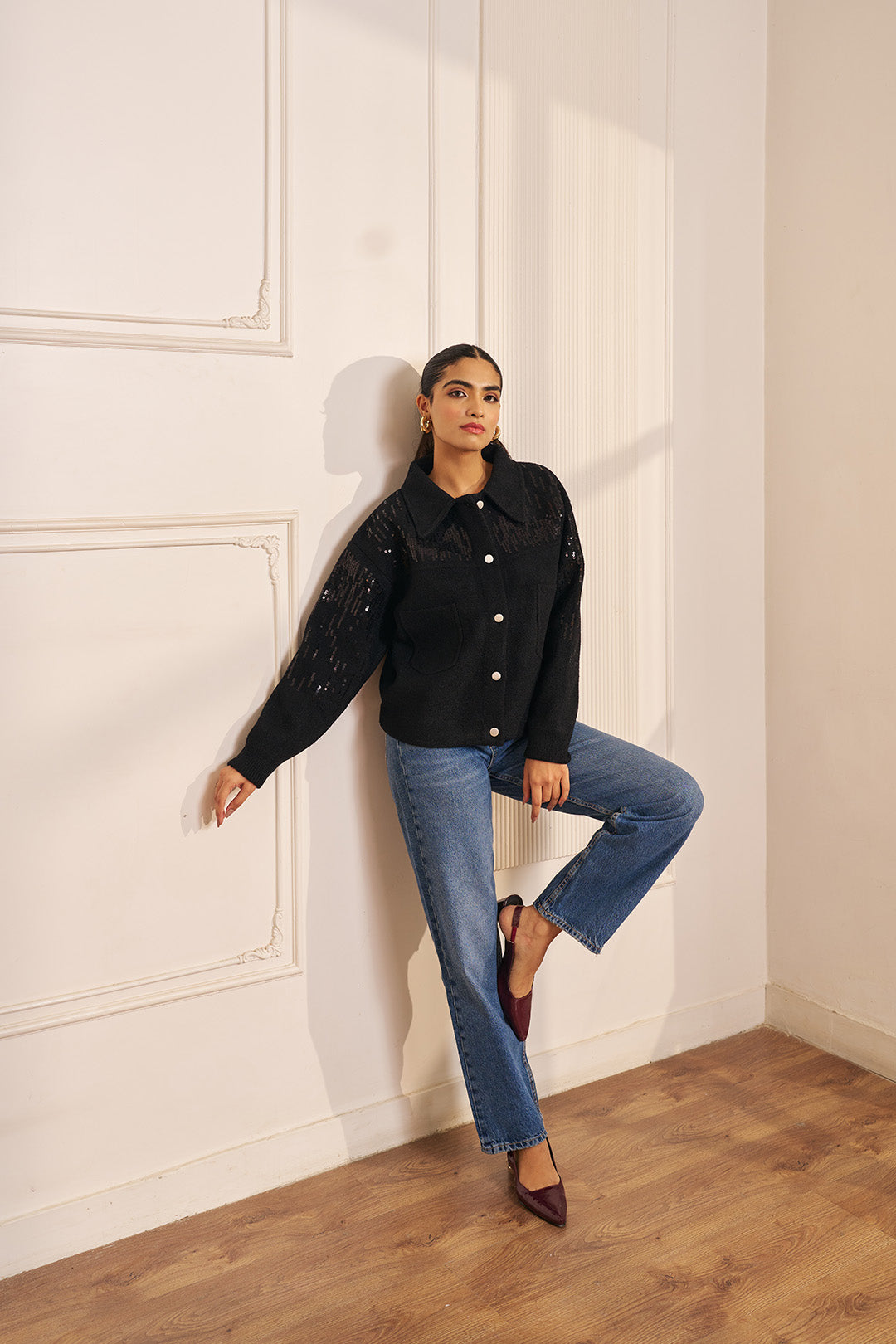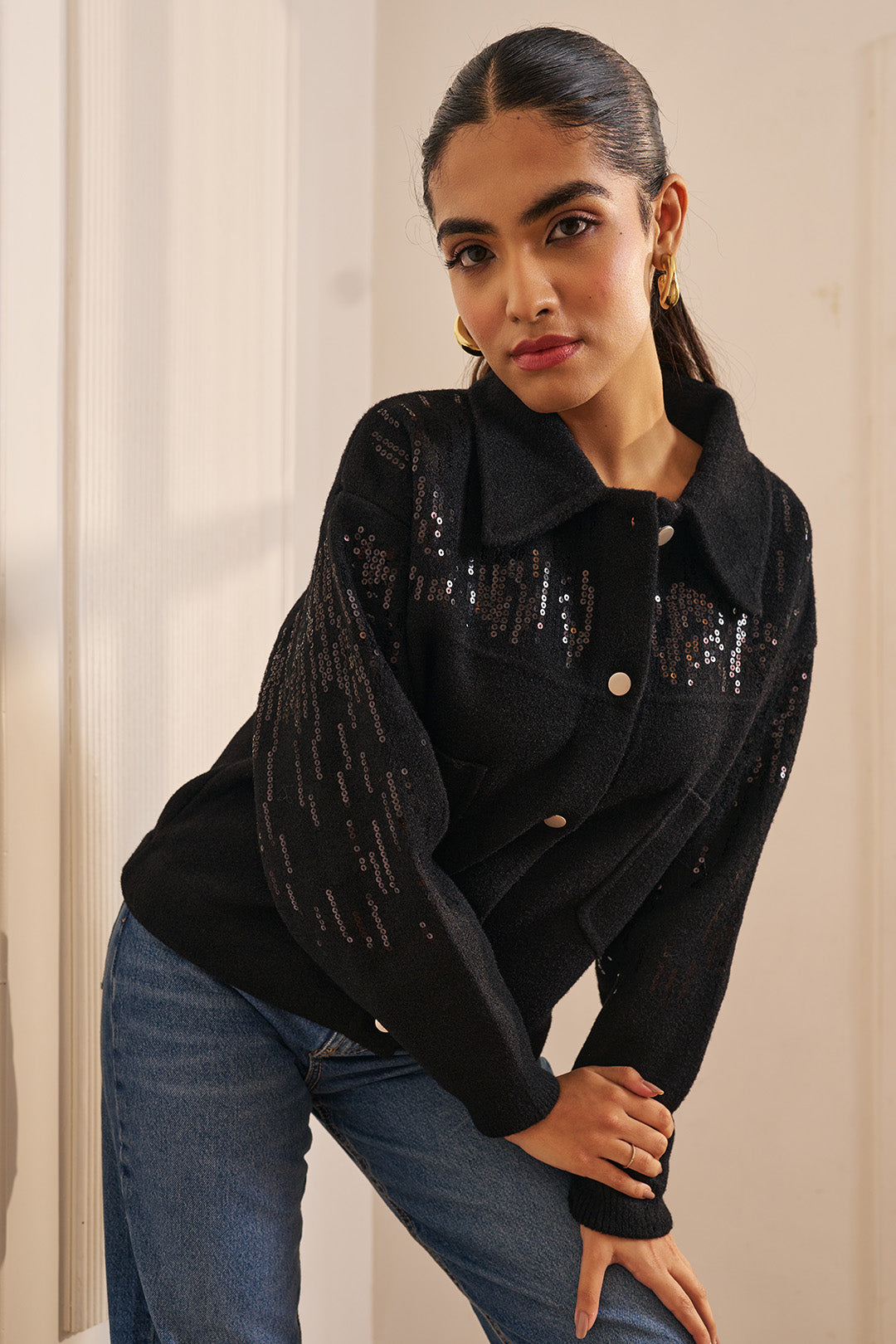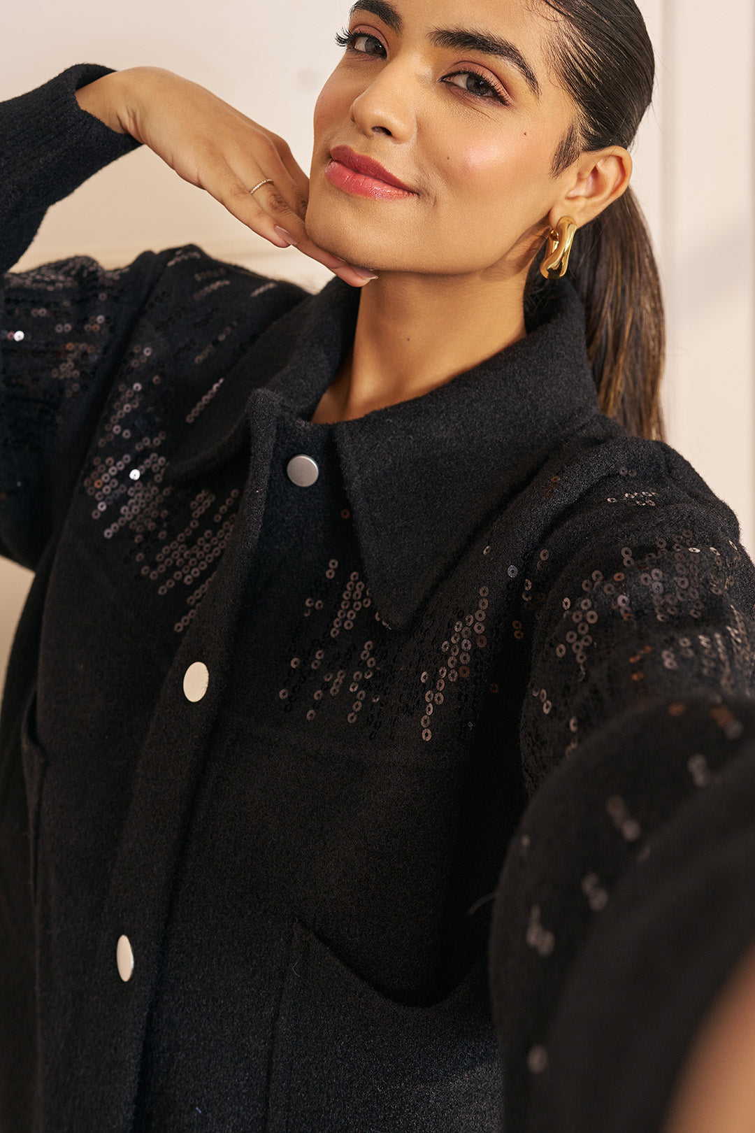 Women Black Imported Viscose Co-ord Set with Handwork & Embellishments (Palm Springs Co-ord Set)
