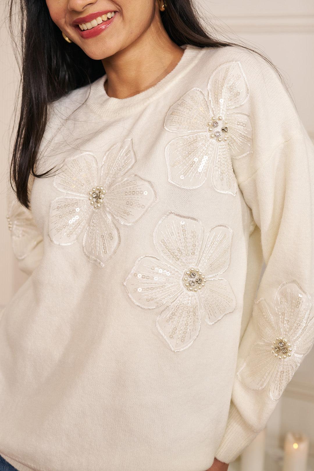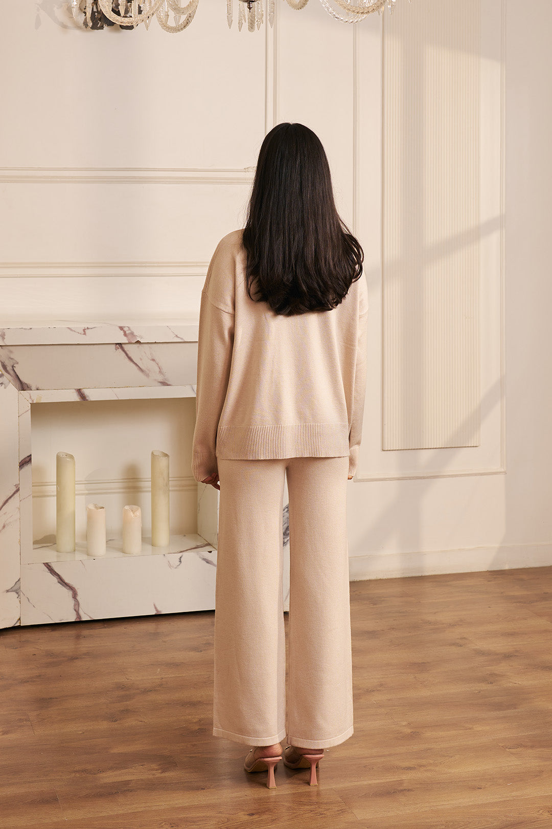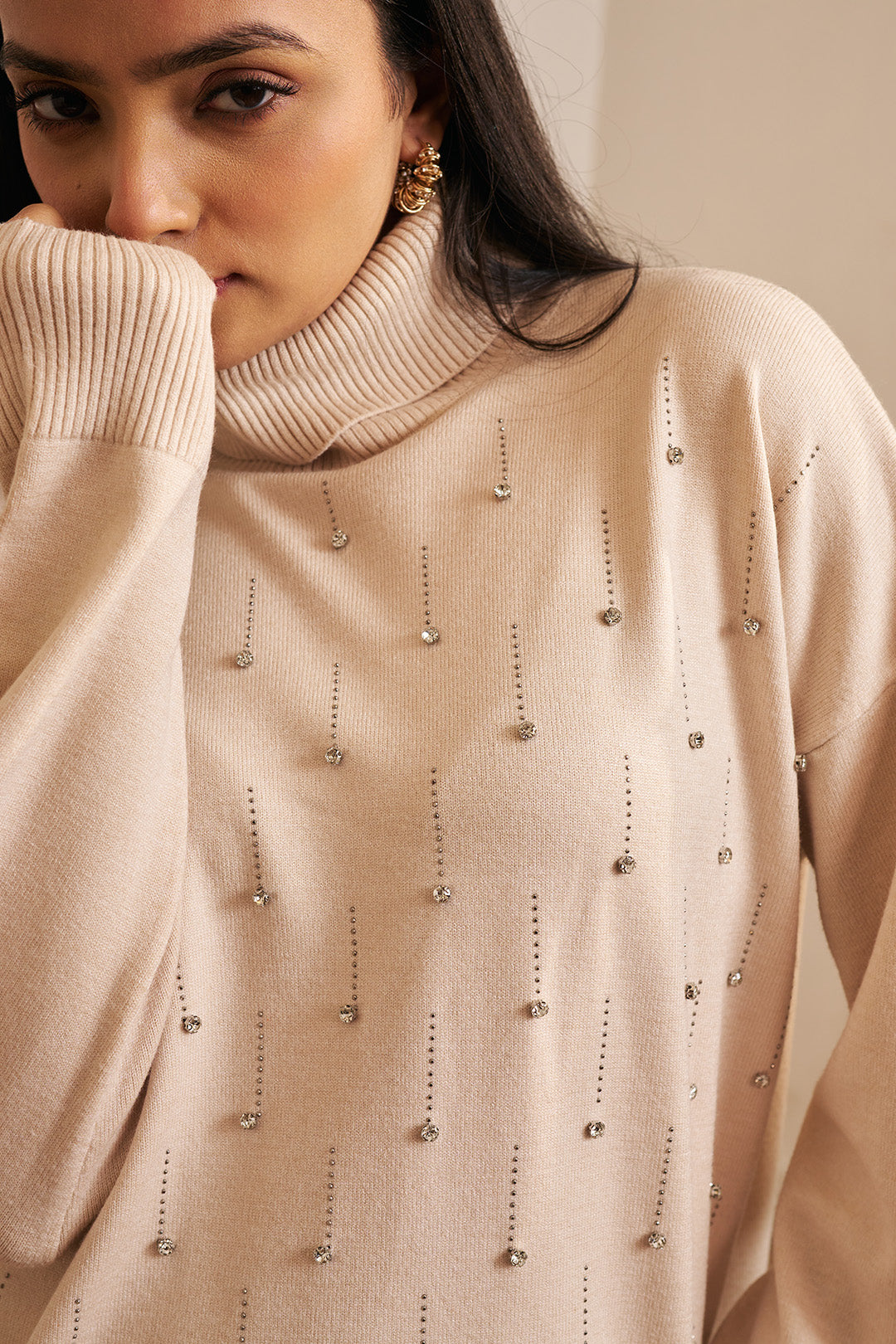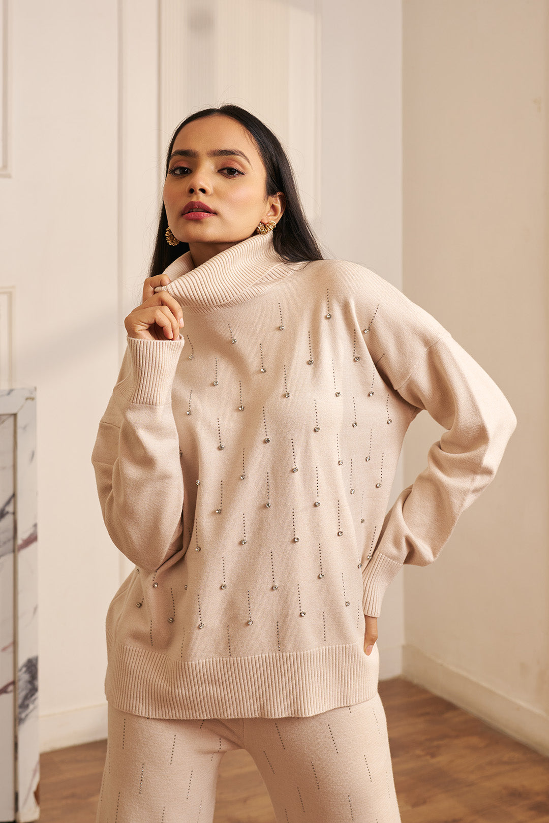 Women Beige Knit Embellished Co-ord Set Janet Beige