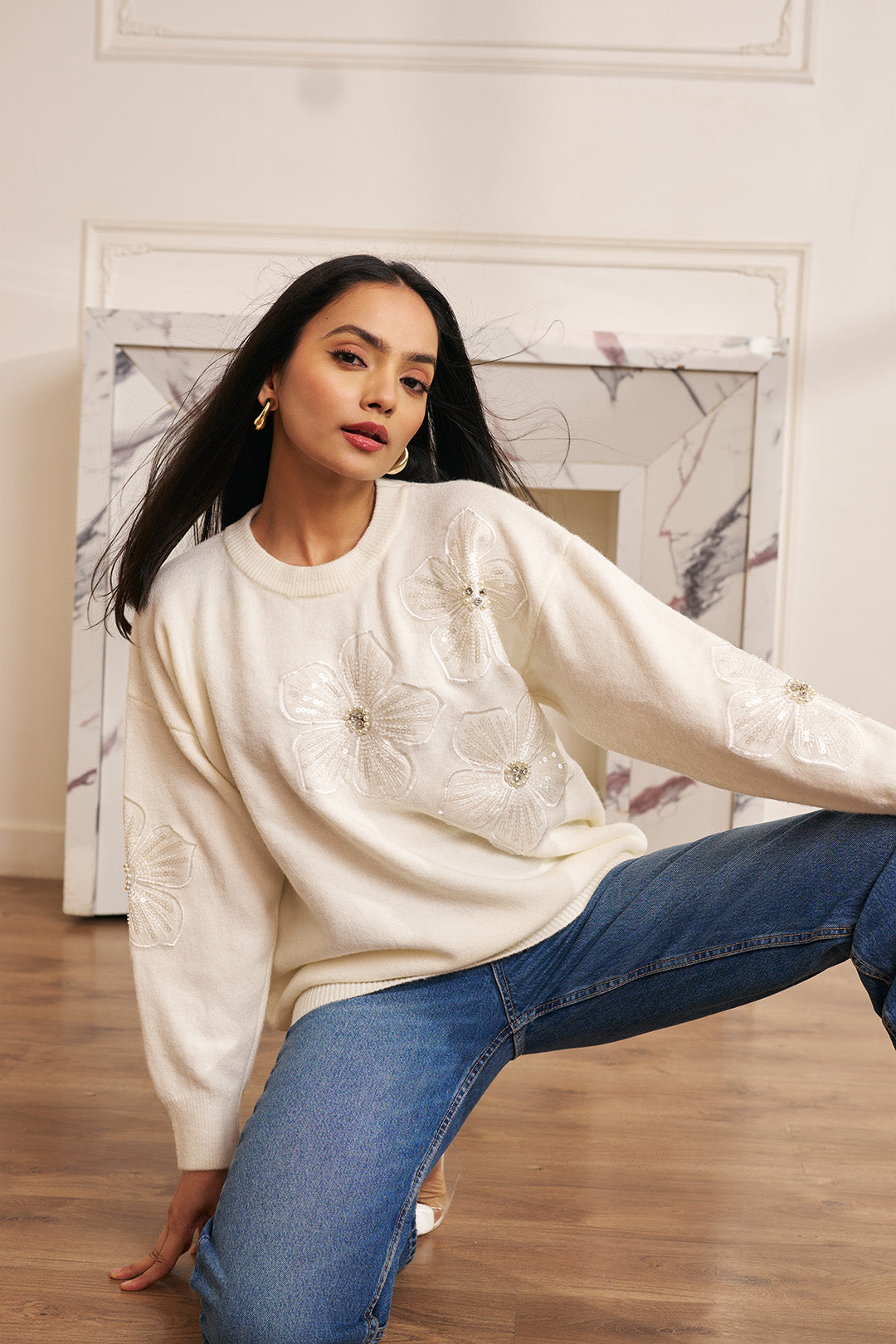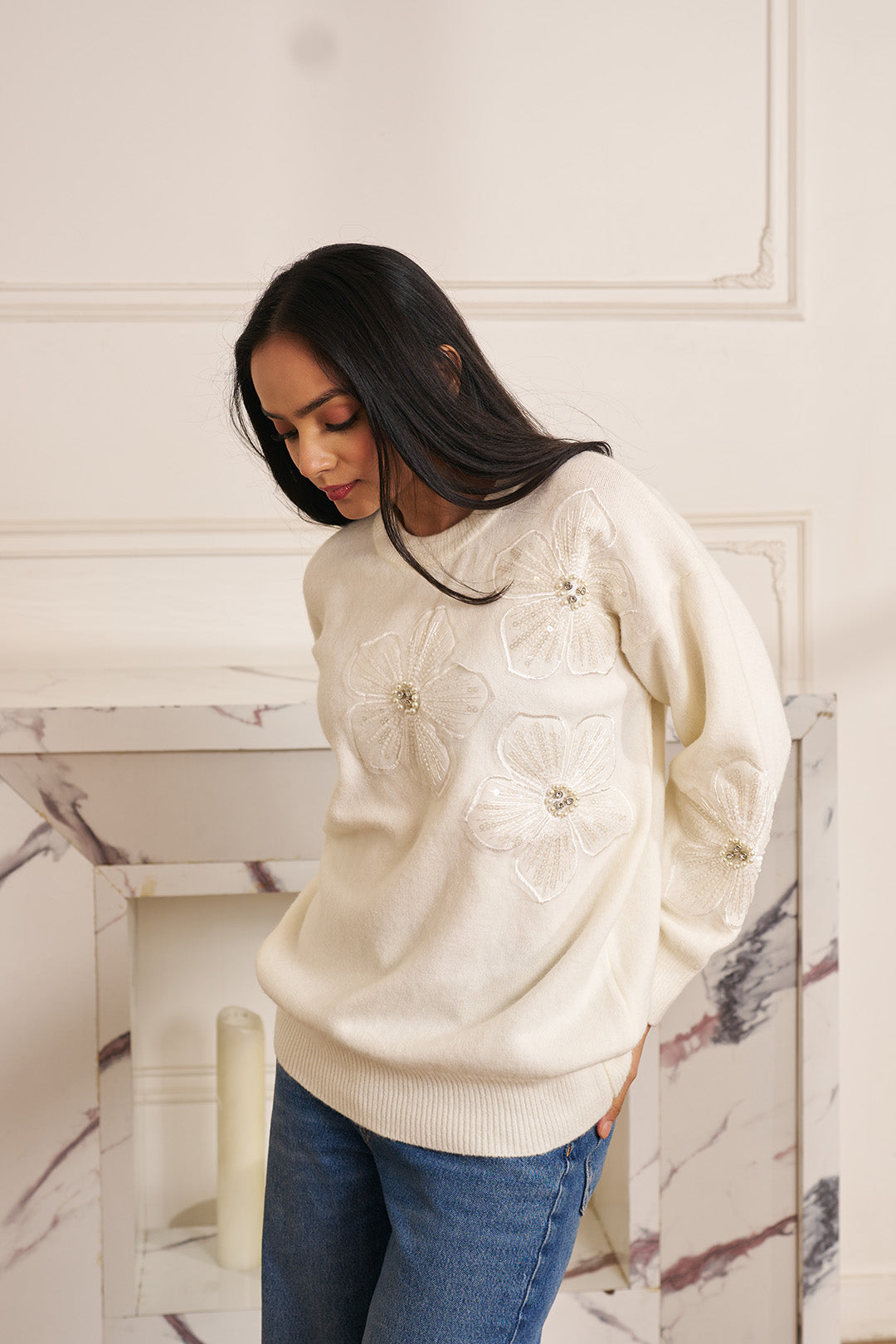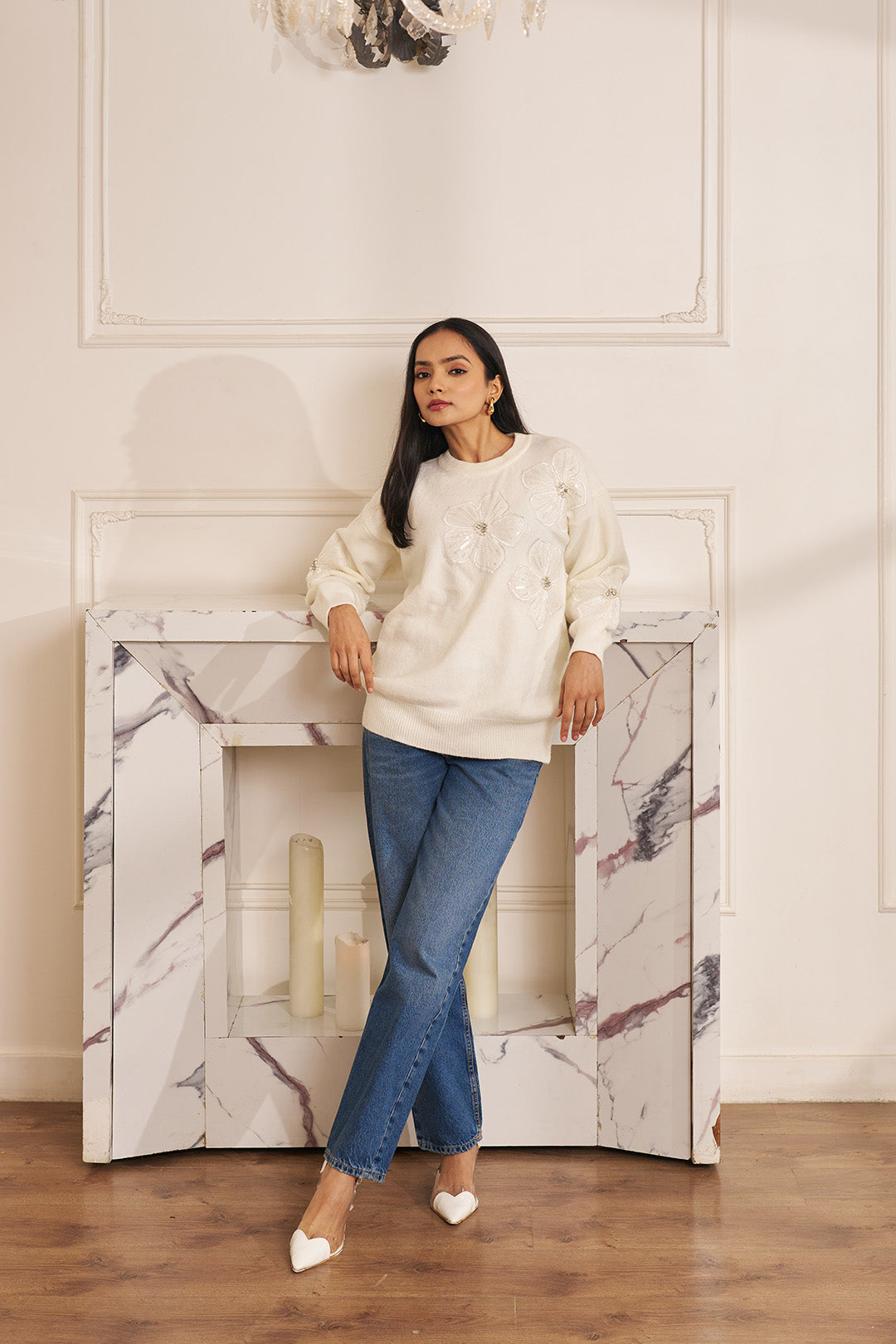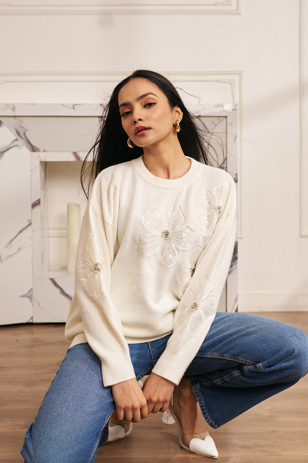 Women White Imported Viscose Co-ord Set with Handwork & Embellishments (Brooklyn Co-ord Set)