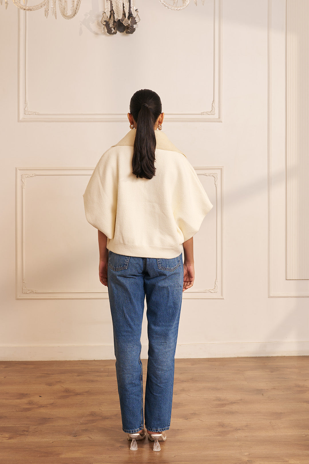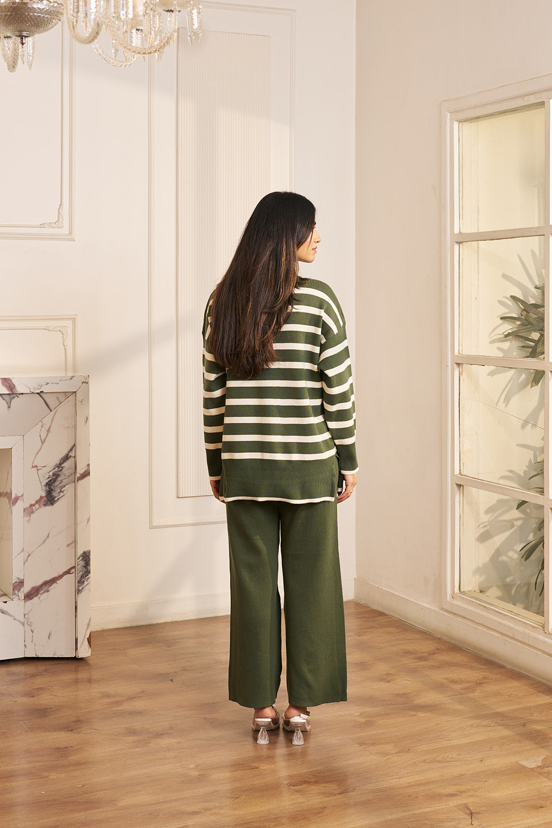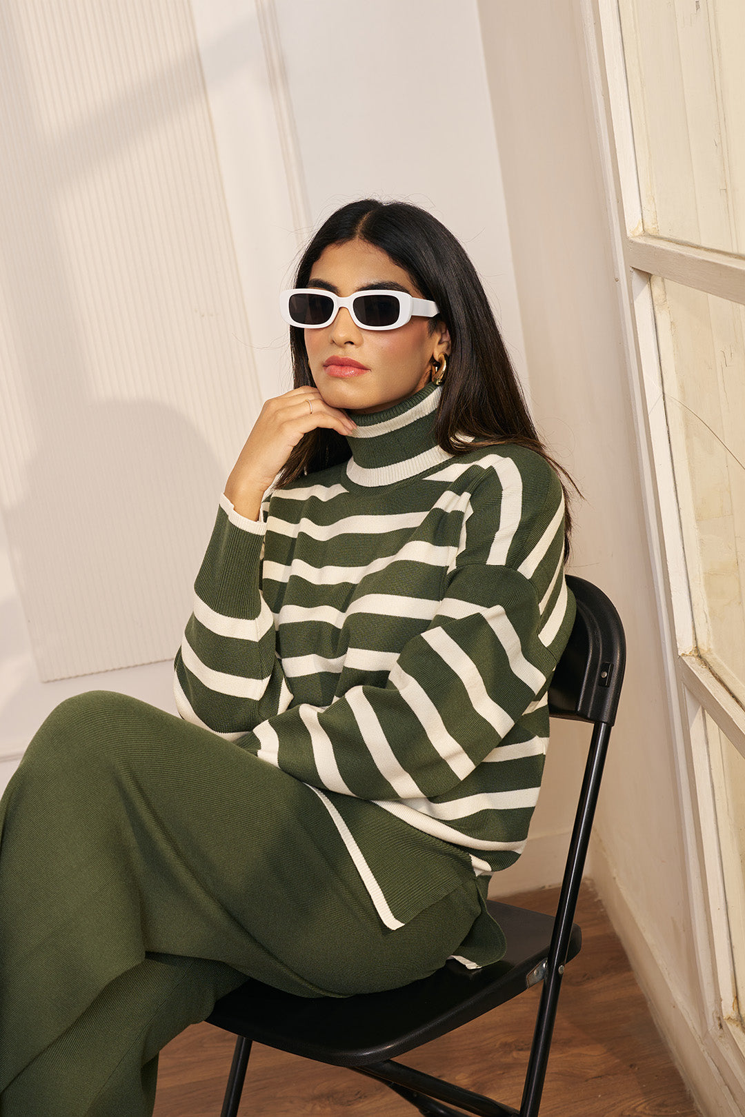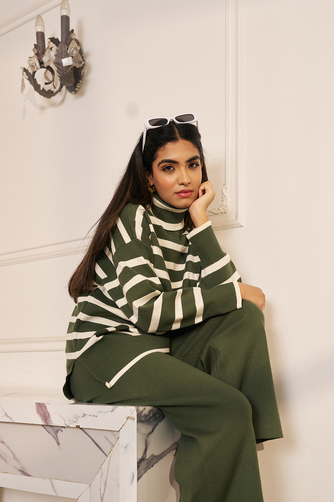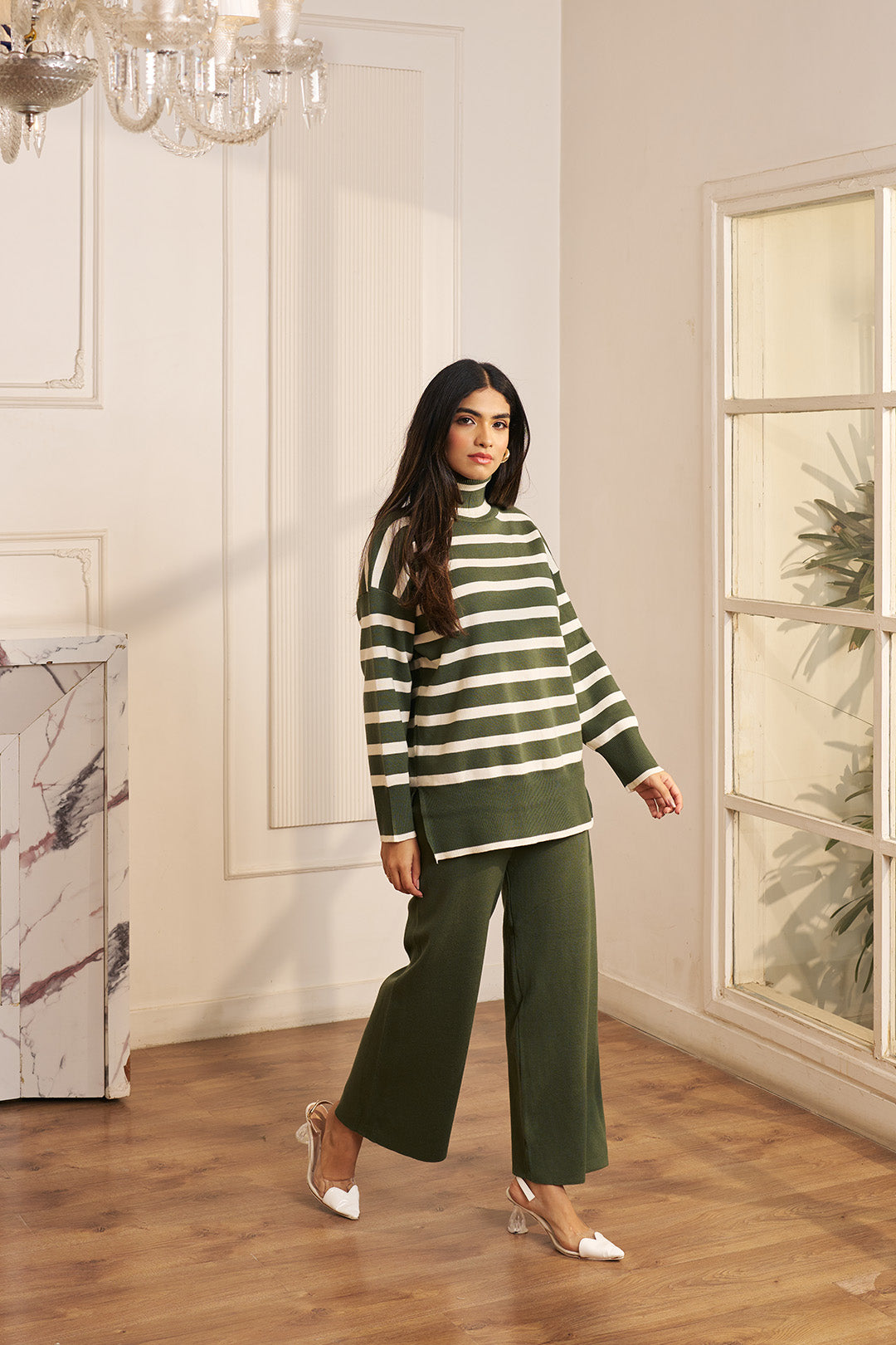 Women Blue and White Striped Turtle Neck Knit Co-ord Set Kourtney Olive