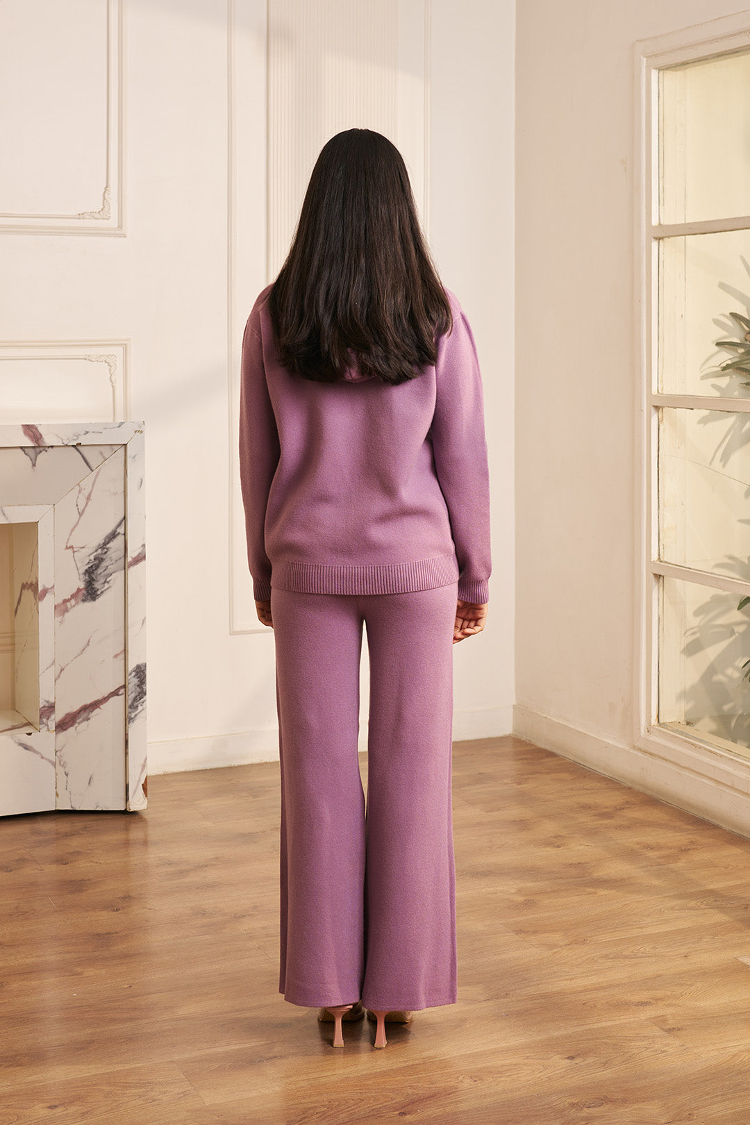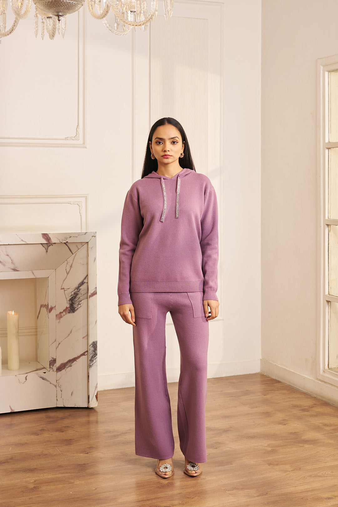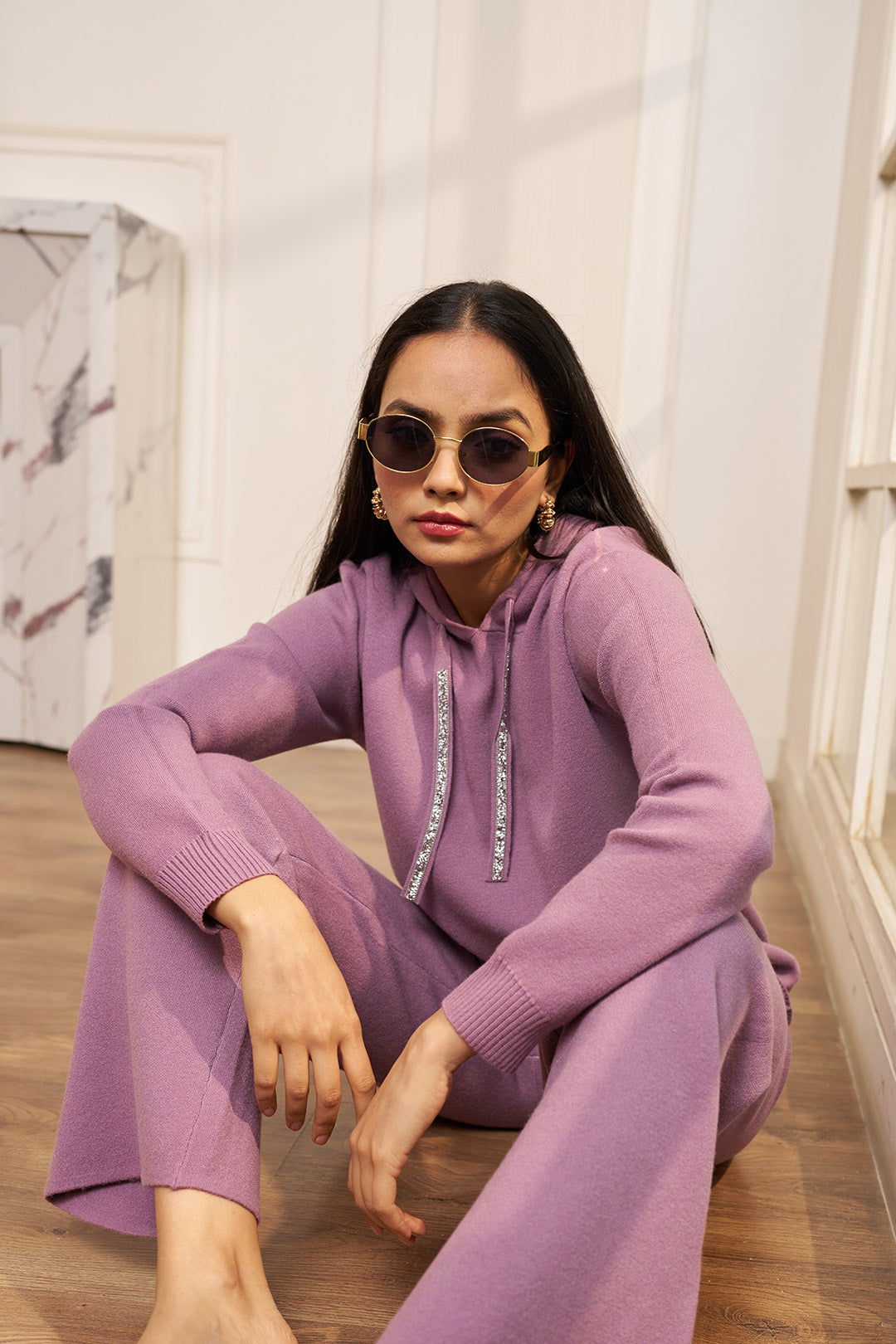 Women Lilac Knitted Hoodie Co-ord Set with Embellished Drawstring Mayson Lilac