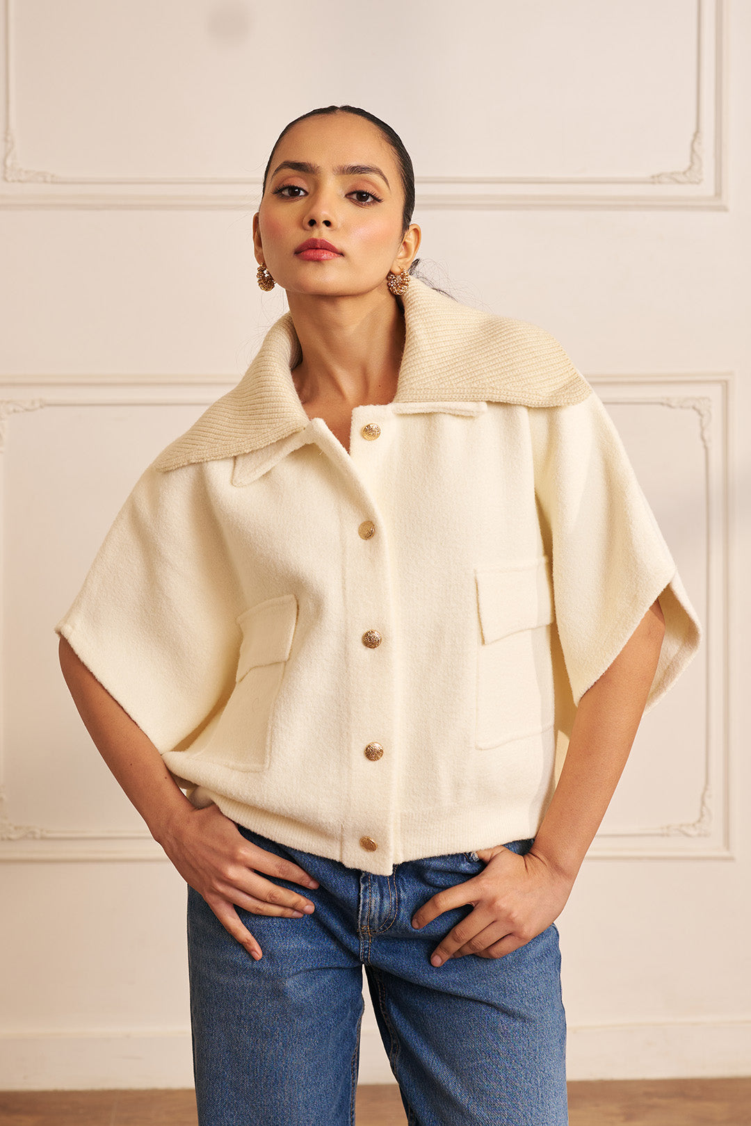 Women Beige Chevron Pattern Knit Jacket Grace Beige